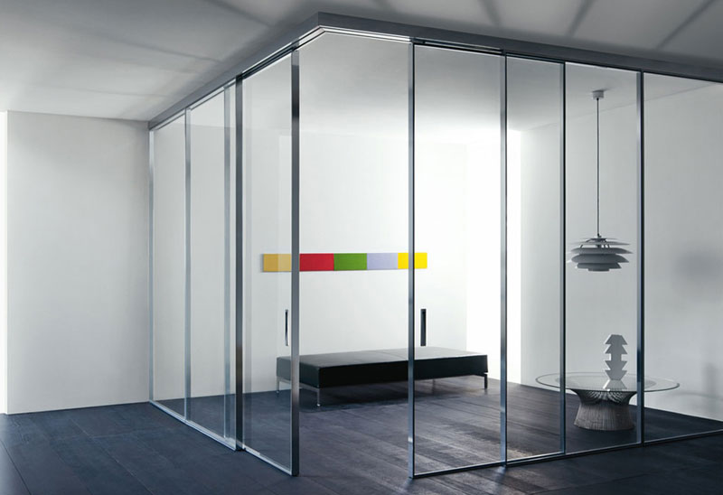 Parlando di porte scorrevoli Lualdi, come si potrebbe non citare le porte scorrevoli in vetro Shoin, sistema di ante scorrevoli e pannelli fissi in vetro, a uno o due binari, progettato per comporre pareti, ispirato alle ampie e leggere superfici mobili della casa tradizionale giapponese. Le lastre vivono all’interno di un sottile telaio in alluminio a filo con il vetro sulla facciata esterna della composizione. Shoin consente la creazione di veri e propri ambienti, luminose scatole di cristallo che definiscono con leggerezza spazi negli spazi.